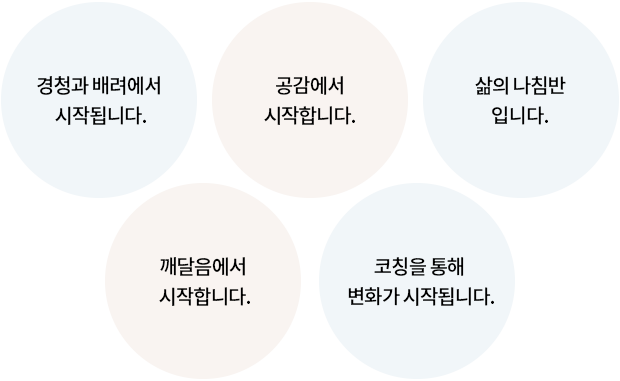 °³ÀÎÀÇ ´Ù¾ç¼ºÀ» ÀüÁ¦·Î ÇÏ¿© ±× »ç¶÷¸¸ÀÇ ¹æ¹ýÀ¸·Î ¹®Á¦¸¦ ÇØ°áÇÏ°Ô Çϰí, ¸ñÇ¥¸¦ ´Þ¼ºÇϵµ·Ï ÀεµÇϰí ÄÚÄ¡¿Í ÄÚĪÀ» ¹Þ´Â »ç¶÷ÀÌ ÆÄÆ®³Ê¸¦ ÀÌ·ç¾î, ½º½º·Î ¸ñÇ¥¸¦ ¼³Á¤Çϰí È¿°úÀûÀ¸·Î ´Þ¼ºÇϸç, ¼ºÀåÇÒ ¼ö ÀÖµµ·Ï Áö¿øÇÏ´Â °úÁ¤