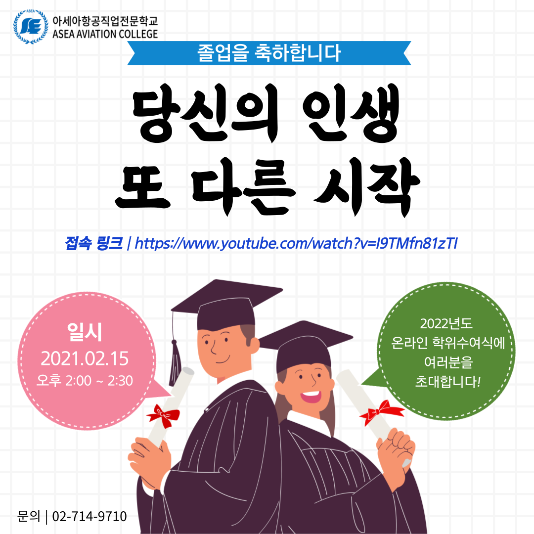 | 2022³âµµ ¾Æ¼¼¾ÆÇ×°øÀü¹®Çб³ ÇÐÀ§¼ö¿©½ÄÀ» ´ÙÀ½°ú °°ÀÌ ÁøÇàÇÒ ¿¹Á¤ÀÔ´Ï´Ù. 2³âÀÇ Çлç±â°£ µ¿¾È Çо÷¿¡ ¸ÅÁøÇÏ¸ç ¹Ì·¡¸¦ À§ÇØ ÈûÂ÷°Ô ¶Ù¾î¿À½Å ¾Æ¼¼¾Æ ÀçÇлý ¿©·¯ºÐµéÀÇ ¿Á¤¿¡ °¨µ¿ÇÏ¿´½À´Ï´Ù. ÀÌÁ¨ ¸ñÇ¥ÇϽвÞÀÇ ³¯°³¸¦ ´Þ¾Æ â°øÀ» °¡¸£´Â ¼¼»óÀÇ ÁÖ¿ªÀÌ µÇ½Ã±æ ÀÀ¿øÇÕ´Ï´Ù. ÃàÇϵ帳´Ï´Ù. *Çà»çÀϽÃ: 2022. 2. 15.(È) 14:00 ~ 14:30 *Çà»çÇüÅÂ: ¿Â¶óÀÎ Çà»ç (À¯Æ©ºê ½Ç½Ã°£ ÁøÇà) *Âü¿©¹æ¹ý: ¸µÅ© Ŭ¸¯ ÈÄ Âü¿© (https://www.youtube.com/watch?v=I9TMfn81zTI) *ÇÐÀ§¼ö¿©: Çà»ç °£ ¾È³» ¿¹Á¤ ![]() |