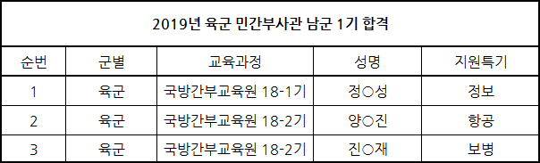 | 2019³â À°±º ¹Î°£ºÎ»ç°ü ³²±º 1±â ÇÕ°Ý | |