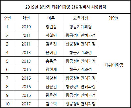 | 2019³â »ó¹Ý±â Ƽ¿þÀÌÇ×°ø Ç×°øÁ¤ºñ»ç ÃÖÁ¾ÇÕ°Ý | |