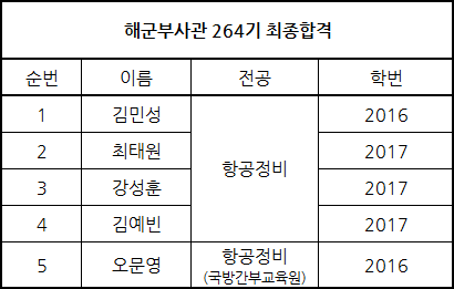 ![]() 2019³â 6¿ù 10ÀÏ ¿ù¿äÀÏ ÇØ±ººÎ»ç°ü ÃÖÁ¾ÇÕ°ÝÀÚ ¹ßÇ¥°¡ ÀÖ¾ú½À´Ï´Ù. º»±³¿¡¼´Â ÃÑ 5¸íÀÇ Ç×°øÁ¤ºñ ÇлýÀÌ ÃÖÁ¾ÇÕ°ÝÀ» ÇÏ¿´½À´Ï´Ù. ´ÙÀ½Àº ÇØ±ººÎ»ç°ü 264±â ÇÕ°ÝÀÚ ¸í´Ü ÀÔ´Ï´Ù. ![]() ÇØ±ººÎ»ç°üÀº ±¹°¡°ø¹«¿ø¿¡ ÁØÇÏ´Â ±Þ¿© ¹× ±Ù¹«¿©°Ç¿¡ »óÀÀÇÏ´Â °¢Á¾ ¼ö´çÀÌ Áö±ÞµÇ¸ç, Àå±âº¹¹«·Î ÀÓ¸íµÉ °æ¿ì ±¹°¡°¡ ÀÎÁ¤ÇÏ´Â Æò»ýÁ÷ÀåÀ¸·Î¼ÀÇ ¾ÈÁ¤Á÷ÀÎ ±Ù¹«°¡ °¡´ÉÇÕ´Ï´Ù. ![]() ¾Æ¼¼¾ÆÇ×°øÁ÷¾÷Àü¹®Çб³¿¡¼´Â À°·ÇØ·°ø±º ¹× ÇØº´´ë µî °¢ ±º ºÎ»ç°ü ¼±¹ß½ÃÇèÀÇ ¸ðµç ÀýÂ÷¸¦ Àü¹® ±³¼öÁøÀÇ ÁöµµÇÏ¿¡ ü°èÀûÀ¸·Î ÁغñÇϰí ÀÖÀ¸¸ç, ¸Å±â¼öº° ÃÖ´Ù ÇÕ°ÝÀÚ¸¦ ¹èÃâÇϰí ÀÖ½À´Ï´Ù. º»±³ Ç×°øÁ¤ºñ ÇлýµéÀÇ ÇØ±ººÎ»ç°ü 264±â ÃÖÁ¾ÇÕ°ÝÀ» Áø½ÉÀ¸·Î ÃàÇÏÇϸç, ¾ÕÀ¸·Îµµ ¾Æ¼¼¾ÆÇ×°øÁ÷¾÷Àü¹®Çб³´Â °¢ ±º ºÎ»ç°ü ¾ç¼ºÀ» À§ÇØ ÃÖ¼±À» ´ÙÇÒ °Í ÀÔ´Ï´Ù. ![]() |