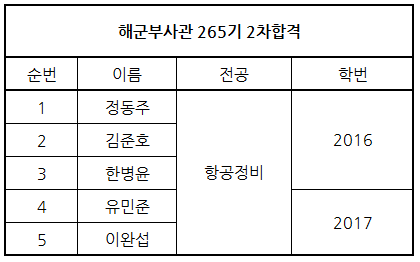 ![]() 2019³â 7¿ù 3ÀÏ ¸ñ¿äÀÏ ÇØ±ººÎ»ç°ü 265±â 2Â÷ ÇÕ°ÝÀÚ ¹ßÇ¥°¡ ÀÖ¾ú½À´Ï´Ù. º»±³¿¡¼´Â ÃÑ 5¸íÀÇ Ç×°øÁ¤ºñ ÇлýµéÀÌ 1Â÷ ÇÕ°ÝÀº ¹°·Ð, 2Â÷ ÀüÇü¿¡¼µµ ¸ðµÎ ÇÕ°ÝÇß½À´Ï´Ù. ´ÙÀ½Àº ÇØ±ººÎ»ç°ü 265±â 2Â÷ ÇÕ°ÝÀÚ ¸í´ÜÀÔ´Ï´Ù. ![]() ÇØ±ººÎ»ç°üÀº ±¹°¡°ø¹«¿ø¿¡ ÁØÇÏ´Â ±Þ¿© ¹× ±Ù¹«¿©°Ç¿¡ »óÀÀÇÏ´Â °¢Á¾ ¼ö´çÀÌ Áö±ÞµÇ¸ç, Àå±âº¹¹«·Î ÀÓ¸íµÉ °æ¿ì ±¹°¡°¡ ÀÎÁ¤ÇÏ´Â Æò»ýÁ÷ÀåÀ¸·Î¼ÀÇ ¾ÈÁ¤Á÷Àû ±Ù¹«°¡ °¡´ÉÇÕ´Ï´Ù. ![]() ¾Æ¼¼¾ÆÇ×°øÁ÷¾÷Àü¹®Çб³¿¡¼´Â À°·ÇØ·°ø±º ¹× ÇØº´´ë µî °¢ ±º ºÎ»ç°ü ¼±¹ß½ÃÇèÀÇ ¸ðµç ÀýÂ÷¸¦ Àü¹® ±³¼öÁøÀÇ ÁöµµÇÏ¿¡ ü°èÀûÀ¸·Î ÁغñÇϰí ÀÖÀ¸¸ç, ¸Å±â¼öº° ÃÖ´Ù ÇÕ°ÝÀÚ¸¦ ¹èÃâÇϰí ÀÖ½À´Ï´Ù. º»±³ Ç×°øÁ¤ºñ ÇлýµéÀÇ ÇØ±ººÎ»ç°ü 265±â 1, 2Â÷ ÇÕ°ÝÀ» Áø½ÉÀ¸·Î ÃàÇÏÇϸç, ¾ÕÀ¸·Îµµ ¾Æ¼¼¾ÆÇ×°øÁ÷¾÷Àü¹®Çб³´Â °¢ ±º ºÎ»ç°ü ¾ç¼ºÀ» À§ÇØ ÃÖ¼±À» ´ÙÇÒ °Í ÀÔ´Ï´Ù. ![]() |