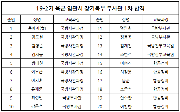 ![]() 2019³â 7¿ù 26ÀÏ(±Ý) 19-2±â À°±º ÀÓ°ü½Ã Àå±âº¹¹« ºÎ»ç°ü 1Â÷ ÇÕ°ÝÀÚ ¹ßÇ¥°¡ ÀÖ¾ú½À´Ï´Ù. º»±³¿¡¼´Â ÃÑ 20¸íÀÇ ÇÕ°ÝÀÚ¸¦ ¹èÃâÇß½À´Ï´Ù. ´ÙÀ½Àº 19-2±â À°±º ÀÓ°ü½Ã Àå±âº¹¹« ºÎ»ç°ü 1Â÷ ÇÕ°ÝÀ» ÇÑ ÇлýµéÀÇ ¸í´ÜÀÔ´Ï´Ù. ![]() Ãë¾÷³ÀÇ ¿µÇâÀ¸·Î ÀÎÇØ¼ ¾ÈÁ¤µÈ ±¹°¡°ø¹«¿øÀÇ ½ÅºÐÀÎ ±¹±º ºÎ»ç°üÀÇ ÀαⰡ ³¯ÀÌ °¥¼ö·Ï ³ô¾ÆÁö°í ÀÖ½À´Ï´Ù. ƯÈ÷, Áö³ 2018³âºÎÅÍ À°±º¿¡¼ ½ÃÇàµÇ°í ÀÖ´Â À°±º ÀÓ°ü½Ã Àå±âº¹¹« ºÎ»ç°ü ½ÃÇèÀÇ °æ¿ì ÇÏ»ç ÀÓ°ü ´Ü°èºÎÅÍ Àå±âº¹¹«°¡ º¸ÀåµÇ´Â “30³â Æò»ý Á÷Àå”À̶ó´Â Á÷¾÷Àû ¾ÈÁ¤¼º ¶§¹®¿¡ Å« Àα⸦ ¸ðÀ¸°í ÀÖ½À´Ï´Ù. ![]() ±¹±º °£ºÎÀÇ Æò±Õ °æÀï·üÀº ´ÜÁö ¼ýÀÚ¿¡ ºÒ°úÇϸç ÇÕ°ÝÀ» À§ÇÑ ÇлýµéÀÇ °ÇÑ ¿Á¤°ú ³ë·Â, °ËÁõµÈ ±³À°½Ã½ºÅÛ°ú Ź¿ùÇÑ ±³¼öÁø µî¿¡ ÀÇÇØ¼ º»±³ ÀçÇлýµéÀº ´©±¸³ª ÇÕ°ÝÀÇ ±â»ÝÀ» ´©¸± ¼ö°¡ ÀÖ½À´Ï´Ù. º»±³ ÀçÇлýµéÀÇ 19-2±â À°±º ÀÓ°ü½Ã Àå±âº¹¹« ºÎ»ç°ü 1Â÷ ÇÕ°ÝÀ» Áø½ÉÀ¸·Î ÃàÇϵ帳´Ï´Ù. ![]() |