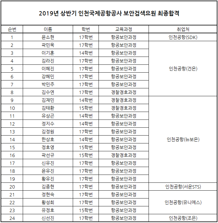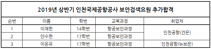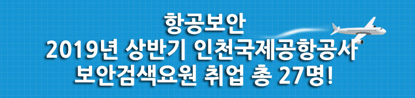 | 2019³â »ó¹Ý±â ÀÎõ±¹Á¦°øÇ×°ø»ç º¸¾È°Ë»ö¿ä¿ø Ãë¾÷ ÃÑ 27¸í! | |
