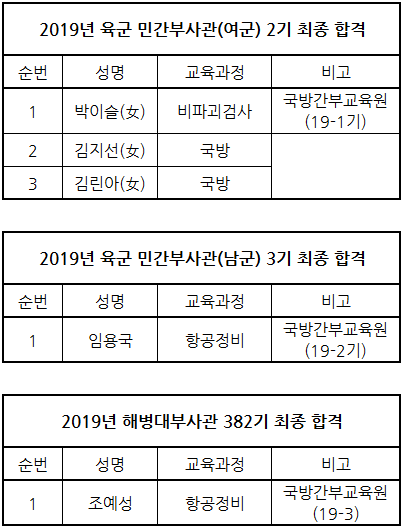 | 2019³â À°±º ¹Î°£ºÎ»ç°ü(¿©, ³²±º) ¹× ÇØº´´ë 382±â ÃÖÁ¾ÇÕ°Ý | |