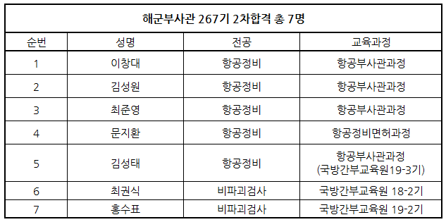 ![]() 2020³â 3¿ù 9ÀÏ ÇØ±ººÎ»ç°ü 267±â 2Â÷ ÇÕ°ÝÀÚ ¹ßÇ¥°¡ ÀÖ¾úÀ¸¸ç, º»±³¿¡¼´Â ÃÑ 7¸íÀÇ ÇлýµéÀÌ 2Â÷ÇÕ°ÝÀ» ÇÏ¿´½À´Ï´Ù.