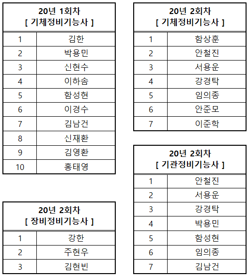 | 2020³â »ó¹Ý±â Ç×°øÁ¤ºñ ÀÚ°ÝÁõ ÃëµæÇöȲ | |