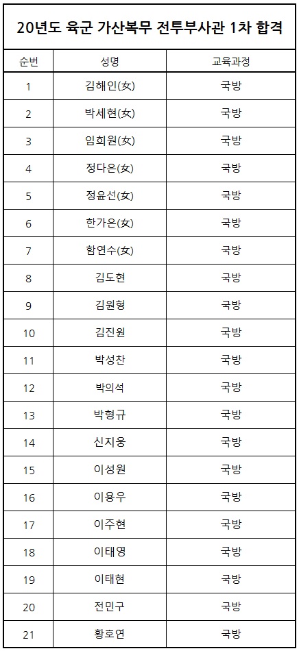 ![]() 2020³â 8¿ù 21ÀÏ ±Ý¿äÀÏ, 20³â À°±º °¡»êº¹¹« ÀüÅõºÎ»ç°ü 1Â÷ ÇÕ°ÝÀÚ ¹ßÇ¥°¡ ÀÖ¾ú½À´Ï´Ù. º»±³¿¡¼ 21¸íÀÇ ÇлýµéÀÌ 1Â÷ ÇÕ°ÝÀ» ÇÏ¿´½À´Ï´Ù. ´ÙÀ½Àº 2020³â À°±º °¡»êº¹¹« ÀüÅõºÎ»ç°ü 1Â÷ ÇÕ°Ý»ýµéÀÇ ¸í´ÜÀÔ´Ï´Ù. ![]() À°±º °¡»êº¹¹« ÀüÅõºÎ»ç°ü Á¦µµ´Â ´ëÇÐ ¹× Àü¹®´ëÇÐ 1Çг⶧ ÀÀ½Ã °¡´ÉÇÏ¸ç ºÎ»ç°ü ¼±¹ß½Ã ÃÑ 2³âÄ¡(4°³ Çбâ) µî·Ï±Ý Àü¾×À» ÀåÇбÝÀ¸·Î ¹Þ´Â ºÎ»ç°ü ¼±¹ßÁ¦µµÀÔ´Ï´Ù. ¿ÃÇØ·Î óÀ½ ÁøÇàµÇ´Â À°±º °¡»êº¹¹« ÀüÅõºÎ»ç°ü ¼±¹ß¿¡¼ º»±³ ±¹¹æ¿¡¼´Â ÀÀ½ÃÀÚ 22¸í Áß 21¸íÀÌ 1Â÷ ¼±¹ß½ÃÇè¿¡ ÇÕ°Ý(ÇÕ°Ý·ü 96%)ÇÏ¿´À¸¸ç ƯÈ÷, ¿©ÇлýÀº 7¸íÀÌ Áö¿øÇÏ¿© 7¸í ¸ðµÎ ÇÕ°ÝÇÏ´Â ¼º°ú¸¦ °ÅµÎ¾ú½À´Ï´Ù. ![]() º»±³ ±¹¹æ¿¡¼´Â ÀåÂ÷ ±¹±º ¿ä¶÷ÀÇ Á¤¿¹ °£ºÎ(Àå±³ / ºÎ»ç°ü)·Î ÀÓ°üÇÒ ¼ö ÀÖ´Â ÀÎÀç ¾ç¼º, ¹èÃâÀ» ÁÖ ¸ñÀûÀ¸·Î Çбâ Áß ÇÐÀ§ Ãëµæ ±³À°Àº ¹°·Ð, ¹æ°ú ÈÄ ¹æÇбⰣ¿¡µµ ±º °£ºÎ ¼±¹ß½ÃÇè ¸ÂÃãÇü Ư°À» ¹«·á·Î ÁøÇàÇϰí ÀÖ½À´Ï´Ù. ÀÌ·¯ÇÑ ±³À°ÀÇ °á°ú, º»±³ ÀçÇлýµéÀº 1Â÷ Çʱâ½ÃÇè ´É·Â±¸ºñ, °¡»êÁ¡ Æ÷ÇÔ ÀÚ°ÝÁõ Ãëµæ(Çѱ¹»ç, Çѱ¹¾î, Àü»ê µî)°ú ¸éÁ¢ / ü·ÂÃøÁ¤ ´É·Â Çâ»ó½ÃÄÑ º»ÀÎÀÇ Èñ¸Á¿¡ µû¶ó °¢ ±ºÀÇ ±º °£ºÎ½ÃÇèÀ» ÁغñÇÏ°í ¸Å ±â¼öº° ³ôÀº ÇÕ°Ý·üÀ» º¸À̰í ÀÖ½À´Ï´Ù. ![]() º»±³ ÀçÇлýµéÀÇ À°±º °¡»êº¹¹« ÀüÅõºÎ»ç°ü ¼±¹ß½ÃÇè 1Â÷ ÇÕ°ÝÀ» Áø½ÉÀ¸·Î ÃàÇϵ帮¸ç, ¾ÕÀ¸·Î ³²Àº ¼±¹ß ÀüÇü¿¡¼µµ ÁÁÀº °á°ú ¾ò±â¸¦ ±â´ëÇÕ´Ï´Ù. ![]() |