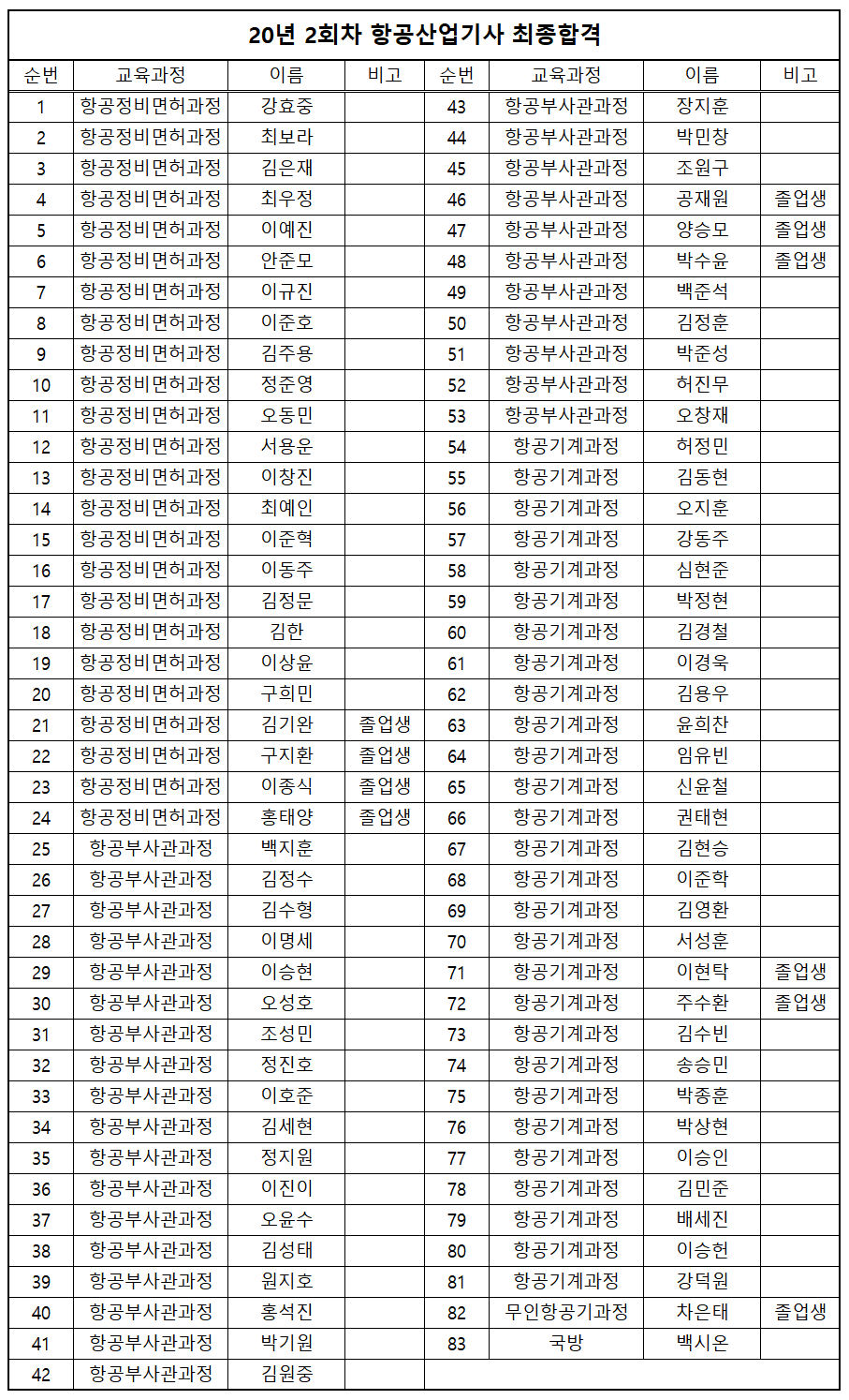 | 2020³â 2ȸÂ÷ Ç×°ø»ê¾÷±â»ç ÀÚ°ÝÁõ Ãëµæ ÇöȲ | |