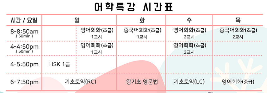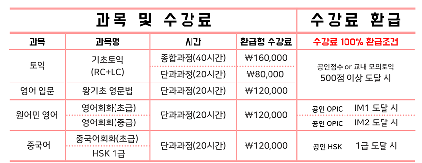 ![]() ¾Æ¼¼¾Æ ¿Ü±¹¾î±³À°¿ø¿¡¼´Â 2021Çг⵵ 1Çб⠾îÇÐÆ¯° ½ÅûÀ» ¹Þ°í ÀÖ½À´Ï´Ù. ¾Æ¼¼¾ÆÇ×°øÁ÷¾÷Àü¹®Çб³¿¡¼´Â ÀçÇлýµéÀÇ ¾îÇÐ ´É·ÂÀ» Çâ»ó½Ã۱â À§ÇØ ¸Å ÇÐ±â ¹× ¹æÇбⰣÀ» Ȱ¿ëÇÏ¿© ¾îÇÐÆ¯°À» ¿î¿µÇϰí ÀÖ½À´Ï´Ù. ![]() À̹ø 2021Çг⵵ 1Çб⠾îÇÐÆ¯°Àº 3¿ù 22ÀÏ ¿ù¿äÀÏ °³°Çϸç, ÃÑ 10ÁÖ°£ ÅäÀÍ, ¿µ¾îÀÔ¹®, ¿ø¾î¹Î ¿µ¾îȸÈ, Áß±¹¾î È¸È ¹× HSK µî ´Ù¾çÇÑ °ú¸ñÀÇ ¾îÇÐÆ¯°À» ÁøÇàÇÕ´Ï´Ù. ´Ü, Äڷγª19·Î ÀÎÇØ º»±³ ¹æ¿ª¼öÄ¢¿¡ µû¶ó ´ë¸é or ºñ´ë¸é ¼ö¾÷À¸·Î ÀüȯµÉ ¼ö ÀÖ½À´Ï´Ù. ![]() 2021Çг⵵ 1Çб⠾îÇÐÆ¯° °ú¸ñ ¹× ¼ö°·á¿Í ½Ã°£Ç¥´Â ´ÙÀ½°ú °°½À´Ï´Ù. ![]() ![]() ¾îÇÐÆ¯° ¼ö° ½ÅûÀ» Èñ¸ÁÇÏ´Â ÇлýµéÀº 3¿ù 12ÀÏ ±Ý¿äÀϱîÁö ¿Ü±³¿ø »ç¹«½Ç(â°ø°ü 504È£)·Î ¹æ¹® Á¢¼ö ÇϽðųª ¢Ï 02-713-6790 À¸·Î ÀüÈ Á¢¼öÇÏ½Ã¸é µË´Ï´Ù. Ư° QRÄÚµå ![]() 2021Çг⵵ 1Çб⠾îÇÐÆ¯°À» ¼ö°ÇϽŠºÐµé¿¡°Ô´Â ¸ñÇ¥ÇÑ Á¡¼ö µµ´Þ½Ã ¼ö°·á 100% ȯ±Þ µî ´Ù¾çÇÑ ÀåÇÐÇýÅÃÀ» °æÇèÇÏ½Ç ¼ö ÀÖ½À´Ï´Ù. ![]() À̹ø ¾îÇÐÆ¯°ÀÌ ¾îÇÐ °æÀï·ÂÀ» °ÈÇÏ´Â ÁÁÀº °è±â°¡ µÇ¾îÁÖ±æ ¹Ù¶ó¸ç, ¾Æ¼¼¾Æ ÀçÇлýµéÀÇ °ü½É°ú Âü¿© ºÎʵ右´Ï´Ù. ![]() |