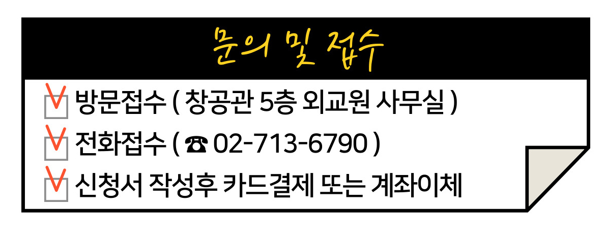 ![]() ¾Æ¼¼¾ÆÇ×°øÁ÷¾÷Àü¹®Çб³¿¡¼´Â ÀçÇлýµéÀÌ ±Û·Î¹ú ¸®´õ·Î ¼ºÀåÇϴµ¥ ÀÖ¾î ÇÊ¿äÇÑ ¿Ü±¹¾î ¾îÇÐ ´É·ÂÀ» Çâ»óÀ» À§ÇØ ±¹³» Ç×°øÀü¹®Çб³ ÃÖÃÊ·Î ¾Æ¼¼¾Æ ¿Ü±¹¾î±³À°¿øÀ» °³¼³ÇÏ¿© ¿î¿µÇϰí ÀÖ½À´Ï´Ù. ![]() ¾Æ¼¼¾Æ ¿Ü±¹¾î±³À°¿ø¿¡¼´Â ±³³» ÇÐÁ¡ '¾îÇаúÁ¤'À» ÇÑ Çб⠵¿¾È '¹«·á'·Î Á¦°øÇϰí ÀÖÀ¸¸ç ¸Å ÇÐ±â ¹× ¹æÇбⰣÀ» Ȱ¿ëÇÏ¿© ¸ÂÃãÇü ¾îÇÐÆ¯°À» ÁøÇàÇϰí ÀÖ½À´Ï´Ù. ![]() À̹ø 2021³âµµ 2Çб⠰³°°ú ÇÔ²² ¾Æ¼¼¾Æ ¿Ü±¹¾î ±³À°¿ø¿¡¼´Â Àü¾× ȯ±ÞÇü ¾Æ¼¼¾Æ ¾îÇÐÆ¯° ½ÅûÀ» ¹Þ°í ÀÖ½À´Ï´Ù. ![]() 21³âµµ 2Çб⠾îÇÐÆ¯°Àº Àü °ÀÇ ¿Â¶óÀÎ ZOOM ¼ö¾÷À¸·Î ÁøÇàµÉ ¿¹Á¤À̸ç Ãâ¼®·ü 90%ÀÌ»ó½Ã ¼ö°·á 100% Àü¾× ȯ±ÞµË´Ï´Ù. °ú¸ñ ¹× ¼ö°·á, ȯ±Þ±âÁØÀº ´ÙÀ½°ú °°½À´Ï´Ù. ![]() ¶ÇÇÑ, ¸ÅÁÖ ±Ý¿äÀÏ¿¡´Â »çÀü ¿¹¾àÇÑ ÇлýµéÀ» ´ë»óÀ¸·Î ¿ø¾î¹Î ±³¼ö´Ô°úÀÇ FREE TALKING¼ö¾÷(40ºÐ)ÀÌ ÁøÇàµÉ ¿¹Á¤ÀÔ´Ï´Ù. ![]() 21³âµµ 2Çб⠾Ƽ¼¾Æ ¾îÇÐÆ¯° ¹× Ưº°ÇÑ ±Ý¿äÀÏ ¿ø¾î¹Î FREE TALKING ¼ö¾÷ Á¢¼ö´Â ¿Ü±³¿ø »ç¹«½Ç(â°ø°ü 5Ãþ)·Î ¹æ¹®ÇϽðųª ÀüÈÁ¢¼ö 02-713-6790¸¦ ÅëÇØ °¡´ÉÇÕ´Ï´Ù. ![]() ´Ù¾çÇÑ ¾îÇмºÀûÀ» Çâ»ó½ÃÄÑ °æÀï·ÂÀ» °®Ãß°íÀÚ ÇÏ´Â ¾Æ¼¼¾Æ ÇлýµéÀÇ ¸¹Àº °ü½É°ú Âü¿©¹Ù¶ø´Ï´Ù. ![]() ¾Æ¿ï·¯ ¿ì¸® ÇлýµéÀÌ ´õ ¸Ö¸® ´õ ³ôÀÌ ²ÞÀ» ÆîÄ¥ ¼ö ÀÖµµ·Ï ¾Æ¼¼¾ÆÇ×°øÁ÷¾÷Àü¹®Çб³¿Í ¾Æ¼¼¾Æ ¿Ü±¹¾î±³À°¿øÀÌ ´Ã µ¿ÇàÇϸç ÀÀ¿øÇϰڽÀ´Ï´Ù. ![]() |