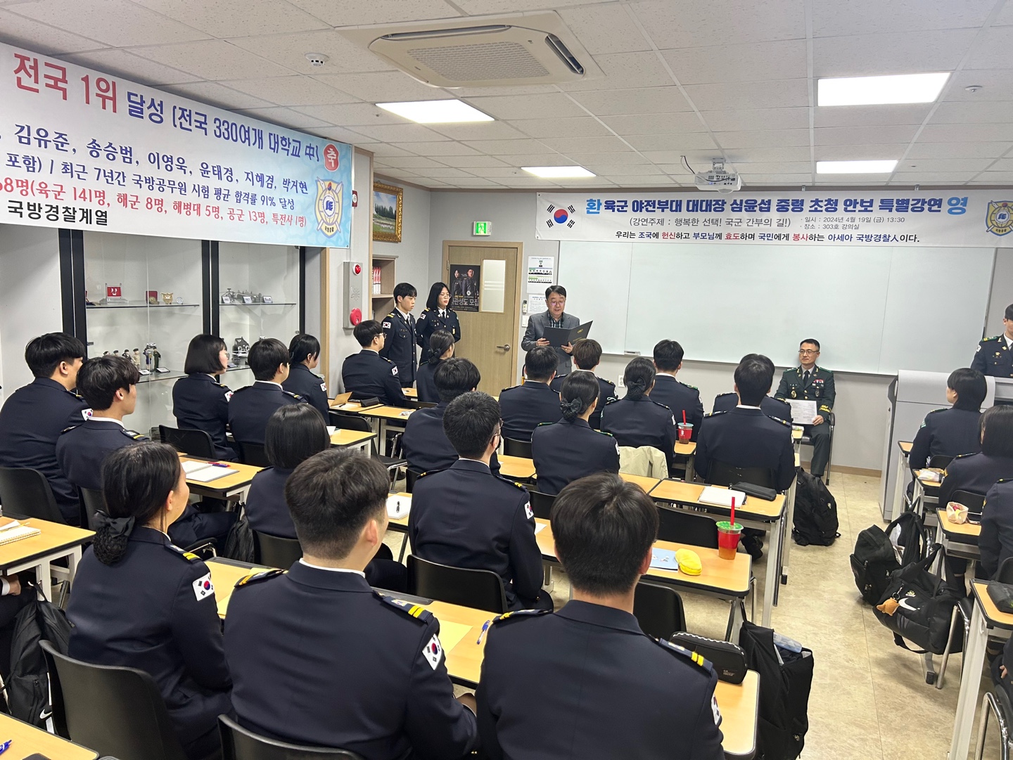![]() ±¹¹æ°æÂû°è¿Àº Áö³ 2024³â 4¿ù 19ÀÏ(±Ý) 13½Ã º»±³ 303È£ °Àǽǿ¡¼ À°±º Á¦9º¸º´»ç´Ü È»ý¹æ´ë´ëÀåÀ¸·Î ÀçÁ÷ ÁßÀÎ <½ÉÀ±¼· Áß·É>À» ÃÊûÇÏ¿© ÀçÇлýµéÀÌ Âü¼®ÇÑ °¡¿îµ¥ 'ÇູÇÑ ¼±ÅÃ! ±¹±º °£ºÎÀÇ ±æ!'À̶ó´Â ÁÖÁ¦·Î ±¹±º °£ºÎ ¸ðÁý ¼³¸íȸ¸¦ °âÇÑ ¾Èº¸ºÐ¾ß ¸í»ç ÃÊû°¿¬À» ½Ç½ÃÇÏ¿´½À´Ï´Ù. ![]() ÃÊû°¿¬ ½ÃÀÛ Àü¿¡ ±¹¹æ°æÂû°è¿ ¸ð¹üÇлýµé¿¡ ´ëÇÑ À°±ºÂü¸ðÃÑÀå »óÀå(2Çгâ À±Áö¿ì) ¹× Á¦9º¸¸í»ç´ÜÀå ±â³äÄÚÀÎ(2Çг⠱ǽÂÇö, ±è½ÂÁÖ) ±×¸®°í °¢°¢ ºÎ»óÀ» ¼ö¿©ÇÏ´Â ¾à½Ä Çà»ç¸¦ ÁøÇàÇÏ¿´½À´Ï´Ù. ![]() ![]() ![]() À̳¯ Çö¿ª ¾ßÀüºÎ´ë ´ë´ëÀå <½ÉÀ±¼· Áß·É>Àº õ¾ÈÇÔ ÇǰÝ, ¿¬Æòµµ Æ÷°Ý µµ¹ß, DMZ Áö·Ú µµ¹ß, ÇÙ ¹× ¹Ì»çÀÏ °³¹ß µî ºÏÇÑÀÇ ´ëÇ¥ÀûÀÎ ´ë³² ±º»çµµ¹ß »ç·ÊµéÀ» ÅëÇÏ¿© ´ëÇѹα¹ Çö»óȲ¿¡ ´ëÇÑ ¾Èº¸ÀǽÄÀÇ Á߿伺°ú ´ëÇлýµéÀÇ ¿Ã¹Ù¸¥ ¿ªÇÒ¿¡ ´ëÇØ¼ ±³À°Çß½À´Ï´Ù. ![]() ¶ÇÇÑ, À°±º °£ºÎÀÇ º´°ú(Ư±â)º° ÁÖ¿ä ¾÷¹« ³»¿ëÀ» »ó¼¼È÷ ¼Ò°³Çϸç, À°±º °£ºÎ ÀÓ°ü ÈÄ ÇÐ»ç ¶Ç´Â ¼®»çÇÐÀ§ ¹× °¢Á¾ ÀÚ°ÝÁõ Ãëµæ, Àü¿ª ÈÄ ±º °æ·Â°ú ¿¬°èµÇ¾î ÀÖ´Â Á¦ 2ÀÇ Á÷¾÷À¸·Î ÁøÃâÇÏ´Â ±æ µî ²÷ÀÓ¾øÀÌ ÀÚ±â°è¹ßÀ» ÇÒ ¼ö ÀÖ´Â ´Ù¾çÇÑ È¯°æ°ú ¹æ¹ý µîÀ» ¼¼¼¼È÷ ¾Ë·ÁÁÖ¾ú½À´Ï´Ù. ¿ì¸® ±¹¹æ°æÂûÀε鿡°Ô ¹Ì·¡ÀÇ Áø·Î¿¡ ´ëÇØ¼ ¸íÈ®ÇÏ°Ô Å½»öÇÒ ¼ö ÀÖ´Â ¸Å¿ì ¶æ ±íÀº ½Ã°£ÀÌ µÇ¾ú½À´Ï´Ù. ±ÍÇÑ ½Ã°£À» ³»¾î º»±³¸¦ ¹æ¹®ÇÏ¿© ÇлýµéÀ» À§ÇØ ¾Æ³¦¾ø´Â Á¶¾ðÀ» ÇØÁØ Çö¿ª ¾ßÀüºÎ´ë ´ë´ëÀå <½ÉÀ±¼· Áß·É>¿¡°Ô ÀÌ ÀÚ¸®¸¦ ºô¾î °¨»çÀÇ ¸¶À½À» ÀüÇÕ´Ï´Ù. ![]() ![]() |