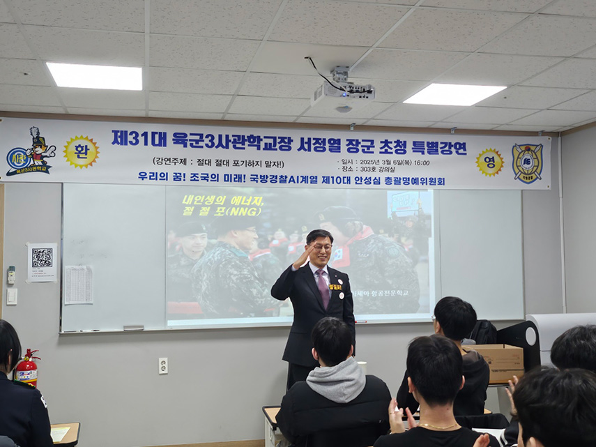 ![]() 2025³â 3¿ù 6ÀÏ(¸ñ), º»±³ ±¹¹æ°æÂûAI°è¿¿¡¼´Â Á¦31´ë À°±º3»ç°üÇб³Àå ¼Á¤¿ À屺(¿¹ºñ¿ª À°±º ¼ÒÀå)À» ÃÊûÇÏ¿© ‘Àý´ë Àý´ë Æ÷±âÇÏÁö ¸»ÀÚ’¶ó´Â ÁÖÁ¦·Î 2025Çг⵵ 1Â÷ ¸í»ç ÃÊû°¿¬À» ÁøÇàÇß½À´Ï´Ù ![]() ¼Á¤¿ À屺Àº ±º¿¡¼ÀÇ Ç³ºÎÇÑ °æÇèÀ» ¹ÙÅÁÀ¸·Î ÀλýÀÇ Áß¿äÇÑ ¼ø°£¸¶´Ù ¸¶ÁÖÇÑ À§±â¿Í µµÀüÀÇ ¼ø°£µé, ±×¸®°í À̸¦ ±Øº¹ÇÑ **‘Æ÷±âÇÏÁö ¾Ê´Â Á¤½Å’**¿¡ ´ëÇØ Áø¼ÖÇÏ°Ô ÀüÇß½À´Ï´Ù. À屺Àº °¿¬À» ÅëÇØ “°á´Ü·Â°ú µµÀüÀ̾߸»·Î ¸®´õ½ÊÀÇ ÇÙ½ÉÀ̸ç, ¾î¶°ÇÑ »óȲ¿¡¼µµ Æ÷±âÇÏÁö ¾Ê´Â ÀÚ¼¼°¡ ÁøÁ¤ÇÑ ÈûÀÌ´Ù”¶ó°í °Á¶Çß½À´Ï´Ù. ¶ÇÇÑ ±º °£ºÎ¿Í °æÂû°ø¹«¿øÀ» ²Þ²Ù´Â Çлýµé¿¡°Ô À§±â¸¦ ±âȸ·Î ¹Ù²Ù´Â ±àÁ¤Àû »ç°í¿Í ¸®´õÀÇ ¸¶À½°¡ÁüÀ» ÀüÇß½À´Ï´Ù ![]() À̹ø ¸í»çƯ°Àº ±¹¹æ°æÂûAI°è¿ ÀçÇлýµé¿¡°Ô ÁøÇÑ ¿ï¸²°ú ¿µ°¨À» ³²±ä ¶æ±íÀº ½Ã°£À̾úÀ¸¸ç, ÇлýµéÀº ±º °£ºÎ¿Í °æÂû°ø¹«¿øÀ¸·Î ¼ºÀåÇϱâ À§ÇÑ ¸®´õ½Ê°ú °ÇÑ ÀÇÁö¸¦ ´ÙÁö´Â °è±â°¡ µÇ¾ú½À´Ï´Ù. ![]() À̹ø Ư°Àº ±¹¹æ°æÂûAI°è¿ ÀçÇлýµé¿¡°Ô Å« ¿ï¸²À» ÁÖ¾ú½À´Ï´Ù. ƯÈ÷ 'Àý´ë Æ÷±âÇÏÁö ¸»ÀÚ' ´Â ¸Þ¼¼Á¦´Â ¾ÕÀ¸·Î ÀÚ½ÅÀÌ °ÞÀ» ¼ö ÀÖ´Â ¾î·Á¿ò°ú µµÀü¿¡ ¸Â¼´Â µ¥ Áß¿äÇÑ Á¤½ÅÀû ÁöħÀÌ µÉ °ÍÀ̰í ÇлýµéÀº À̹ø °¿¬À» ÅëÇØ, ±º °£ºÎ¿Í °æÂû°ø¹«¿øÀ» ÇâÇÑ ±æ¿¡ ÇÊ¿äÇÑ ¸®´õ½Ê°ú °ÇÑ ÀÇÁö¸¦ ´ÙÁú ¼ö ÀÖ¾ú°í, ÀÚ½ÅÀÌ Á÷¸éÇÑ »óȲÀ» ±àÁ¤ÀûÀÎ ¹æÇâÀ¸·Î º¯È½Ãų ¼ö ÀÖ´Â ÈûÀ» ¾ò¾ú½À´Ï´Ù. º»±³´Â ¾ÕÀ¸·Îµµ ´Ù¾çÇÑ ¸í»ç ÃÊû°¿¬À» ÅëÇØ ÇлýµéÀÌ ±¹°¡ ¾Èº¸¸¦ À̲ø ÁøÁ¤ÇÑ ¸®´õ·Î ¼ºÀåÇÒ ¼ö ÀÖµµ·Ï ²ÙÁØÈ÷ Áö¿øÇÒ ¿¹Á¤ÀÔ´Ï´Ù ![]() |