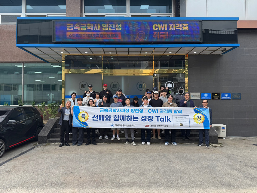 ![]() 2025³â 5¿ù 19ÀÏ, º»±³ ½º¸¶Æ®¾ÈÀüÁø´Ü°è¿¿¡¼´Â ±Ý¼Ó°øÇÐ»ç °úÁ¤ ÀçÇлý ¾çÁø¼º ÇлýÀÌ ÀçÇлý ÃÖÃÊ·Î ±¹Á¦ ¿ëÁ¢°Ë»ç Àü¹®°¡ ÀÚ°ÝÀÎ **CWI(Certified Welding Inspector)**¸¦ ÃëµæÇϰí, ÈĹèµéÀ» ´ë»óÀ¸·Î ¸àÅ丵 °¿¬À» ÁøÇàÇß½À´Ï´Ù. ![]() CWI ÀÚ°ÝÁõÀº **¹Ì±¹¿ëÁ¢Çùȸ(AWS)**¿¡¼ ½ÃÇàÇÏ´Â ÃÖ°í ¼öÁØÀÇ ¿ëÁ¢°Ë»ç ºÐ¾ß Àü¹® ÀÚ°ÝÀ¸·Î, ¿ëÁ¢ ÀýÂ÷ ¹× °á°úÀÇ Ç°ÁúÀ» °ËÁõÇÏ°í °ü¸®ÇÏ´Â ÇÙ½É ¿ªÇÒÀ» ¼öÇàÇϸç, ¸ðµç ½ÃÇèÀÌ ¿µ¾î·Î ÁøÇàµÇ¾î ³ôÀº Àü¹®Áö½Ä°ú ½Ç¹« ¿ª·®À» ¿ä±¸ÇÕ´Ï´Ù. ¾çÁø¼º ÇлýÀº 2025³â 4¿ù 15ÀÏ CWI ½ÃÇè¿¡ ÃÖÁ¾ ÇÕ°ÝÇßÀ¸¸ç, À̹ø ¼º°ú¸¦ ±â³äÇϰí ÈĹèµé¿¡°Ô ¿µ°¨À» ÁÖ±â À§ÇØ **‘¼±¹è¿Í ÇÔ²²ÇÏ´Â ¼ºÀå Talk’**À̶ó´Â ÁÖÁ¦·Î °¿¬À» ÁøÇàÇß½À´Ï´Ù. ![]() °¿¬¿¡¼ ¾çÁø¼º ÇлýÀº CWI ÀÚ°ÝÁõ ÃëµæÀ» À§ÇÑ Áغñ °úÁ¤, ÀçÇÐ Áß °æÇè, ±×¸®°í ¹Ì·¡ ºñÀü¿¡ ´ëÇØ ¼ÖÁ÷ÇÏ°Ô À̾߱âÇϸç, ÈĹèµé¿¡°Ô µµÀü°ú ³ë·ÂÀÇ Á߿伺À» Àü´ÞÇß½À´Ï´Ù. °¿¬¿¡ Âü¼®ÇÑ ÇлýµéÀº ¼±¹èÀÇ ¿Á¤°ú µµÀü Á¤½Å¿¡ ±íÀº °ø°¨À» Ç¥Çϸç, ÀÚ½ÅÀÇ ¸ñÇ¥ ¼³Á¤¿¡ ´ëÇÑ ±¸Ã¼ÀûÀÎ µ¿±â¸¦ ¾ò´Â ½Ã°£À» °¡Á³½À´Ï´Ù. ½º¸¶Æ®¾ÈÀüÁø´Ü°è¿ ±è¸¸¼ø ÇкÎÀåÀº "¾çÁø¼º ÇлýÀÇ CWI ÀÚ°ÝÁõ ÃëµæÀº ¿ì¸® Çб³°¡ ÁöÇâÇÏ´Â ½Ç¹« Á᫐ Àü¹®ÀÎÀç ¾ç¼º ¸ñÇ¥¿¡ ºÎÇÕÇÏ´Â ¶Ù¾î³ ¼º°úÀÔ´Ï´Ù. À̹ø ¸àÅ丵 °¿¬ÀÌ ÈĹèµé¿¡°Ô ±àÁ¤ÀûÀÎ ¿µÇâÀ» ¹ÌÃÄ, ´õ ¸¹Àº ÇлýµéÀÌ °¢ÀÚÀÇ ºÐ¾ß¿¡¼ ²ÞÀ» ÀÌ·ê ¼ö Àֱ⸦ ±â´ëÇÕ´Ï´Ù." ¶ó°í ÀüÇß½À´Ï´Ù. ![]() ¾Æ¼¼¾ÆÇ×°øÁ÷¾÷Àü¹®Çб³´Â ¾ÕÀ¸·Îµµ ÇлýµéÀÇ Àü¹®¼º °È¿Í Áø·Î ¼³°è¸¦ À§ÇÑ ´Ù¾çÇÑ ÇÁ·Î±×·¥À» Áö¼ÓÀûÀ¸·Î Áö¿øÇÒ °ÍÀÓÀ» ¹àÇû½À´Ï´Ù. ![]() |