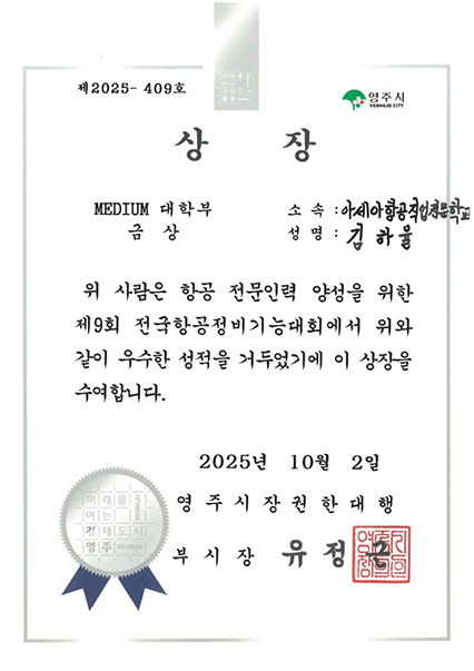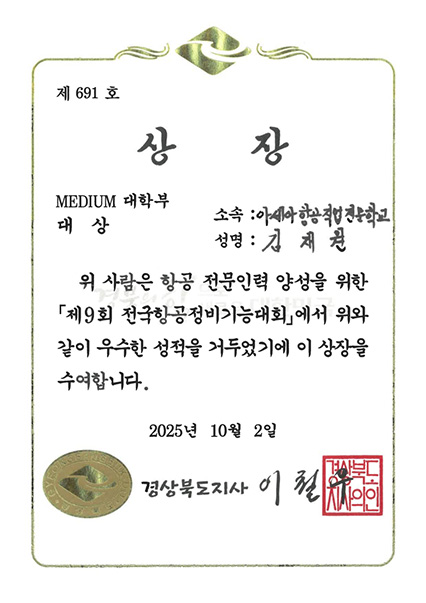 | Ç×°øÁ¤ºñ°è¿ 2025³âµµ Á¦9ȸ Àü±¹ Ç×°ø±â´É´ëȸ Âü¼® ÀÔ»ó°á°ú | |