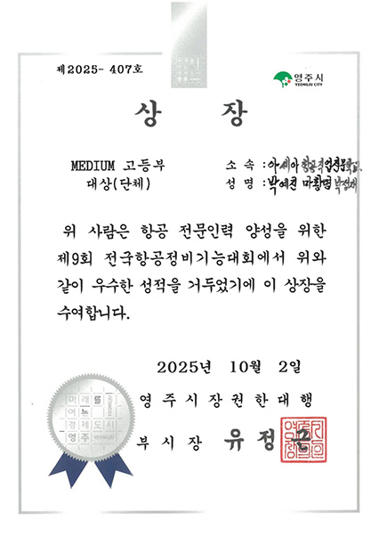 ![]() 2025³â 9¿ù 30ÀÏ(È)ºÎÅÍ 10¿ù 2ÀÏ(¸ñ)±îÁö °³ÃÖµÈ Á¦9ȸ Àü±¹ Ç×°ø±â´É´ëȸ¿¡¼ º»±³ Ç×°øÁ¤ºñ°è¿ ÀçÇлýµéÀÌ ´ë»ó°ú ±Ý»ó µî ¿ì¼öÇÑ ¼ºÀûÀ» °ÅµÎ¸ç µÎ°¢À» ³ªÅ¸³Â½À´Ï´Ù. ![]() À̹ø ´ëȸ´Â °æ»óºÏµµ°¡ ÁÖÃÖÇÏ°í °í¿ë³ëµ¿ºÎ·Çѱ¹»ê¾÷Àη°ø´Ü µî ¿©·¯ ±â°üÀÌ ÈÄ¿øÇÏ´Â Àü±¹ ±Ô¸ðÀÇ Çà»ç·Î, Âü°¡ÀÚµéÀº Premium Section°ú Medium Section µÎ ºÐ¾ß¿¡¼ ´Ù¾çÇÑ Ç×°øÁ¤ºñ °úÁ¦¸¦ ¼öÇàÇÏ¸ç ½Ç·ÂÀ» °Ü·ð½À´Ï´Ù. ![]() ƯÈ÷ Premium Section °³ÀÎÀü ¿ì¼öÀÚ¿¡°Ô´Â 2028³â ÀϺ» ±¹Á¦±â´É¿Ã¸²ÇÈ ±¹°¡´ëÇ¥ ¼±¹ßÀü ÃâÀü ÀÚ°ÝÀÌ ÁÖ¾îÁö¸ç, ¶ÇÇÑ Premium ¹× Medium Section °³ÀÎÀü ÀÔ»óÀÚ Àü¿ø¿¡°Ô´Â Ç×°ø±â´É»ç ÀÚ°ÝÀÌ ºÎ¿©µË´Ï´Ù. ![]() ¾Æ¼¼¾ÆÇ×°øÁ÷¾÷Àü¹®Çб³´Â AMO(Ç×°øÁ¤ºñ µ¿¾Æ¸®) Ȱµ¿ÀÇ ÀÏȯÀ¸·Î ²ÙÁØÇÑ ¹æ°ú ÈÄ ÈÆ·ÃÀ» À̾î¿Ô½À´Ï´Ù. À强Èñ ÇкÎÀå Áöµµ ¾Æ·¡ ÇлýµéÀº ½ÇÁ¦ Ç×°øÁ¤ºñ ÇöÀå°ú À¯»çÇÑ È¯°æ¿¡¼ ½Ç½ÀÀ» ¹Ýº¹ÇÏ¸ç ´ëȸ¸¦ ÁغñÇß½À´Ï´Ù. ![]() ±× °á°ú, Medium Section ´ëÇкΠ´ë»ó : ±èÀç¿ø ÀçÇлý µîÀÇ ¶Ù¾î³ ¼º°ú¸¦ ÀÌ·ç¾ú½À´Ï´Ù. ![]() ![]() Ç×°øÁ¤ºñ°è¿Àº ¾ÕÀ¸·Îµµ Àü±¹ Ç×°ø±â´É´ëȸ¿¡ ¸Å³â Âü°¡ÇÏ¿© ¶ÇÇÑ µ¿¾Æ¸® Ȱµ¿ Ȱ¼ºÈ¿Í ½Ç¹« Á᫐ ±³À°È¯°æÀ» ÅëÇØ ![]() |