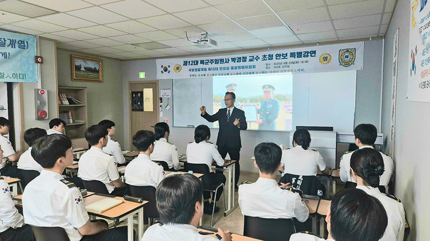 ![]() 2025³â 9¿ù 23ÀÏ(È), º»±³ 303È£ °Àǽǿ¡¼ ±¹¹æ°æÂûAI°è¿ ÀçÇлý Àü¿øÀÌ Âü¼®ÇÑ °¡¿îµ¥ ‘Á¦12´ë À°±º ÁÖÀÓ¿ø»ç ¹Ú°æÃ¶ ±³¼ö ÃÊû ¾Èº¸ Ư°’ÀÌ ÁøÇàµÇ¾ú½À´Ï´Ù. ![]() ¹Ú°æÃ¶ ±³¼ö´Â ¾à 34³â°£ ±º º¹¹«¸¦ ÅëÇØ ±¹Å乿À§¿Í ±¹°¡ ¹ßÀü¿¡ Çå½ÅÇßÀ¸¸ç, À°±º Á¦12´ë ÁÖÀÓ¿ø»ç·Î ÀçÀÓ ÈÄ ¿¹ÆíÇÑ ÇàÁ¤ÇÐ ¹Ú»çÀÔ´Ï´Ù. Âü°í·Î À°±º ÁÖÀÓ¿ø»ç´Â À°±º ºÎ»ç°ü 8¸¸¿© ¸í Áß ÃÖ°í ¼¿ÀÇ Á÷Ã¥À¸·Î, À°±º ¼ÒÀå¿¡ ÁØÇÏ´Â ÀÇÀü ¿¹¿ì¸¦ ¹Þ´Â Áß¿äÇÑ º¸Á÷ÀÔ´Ï´Ù. ![]() À̳¯ ¹Ú ±³¼ö´Â ‘±¹°¡°øÁ÷ÀڷμÀÇ ¿Ã¹Ù¸¥ ŵµ’¸¦ ÁÖÁ¦·Î °¿¬À» ÁøÇàÇϸç, “±¹¹æ ¹× °æÂû°ø¹«¿øÀÇ ±æÀ» ¼±ÅÃÇÑ ¿©·¯ºÐÀº Àλý¿¡¼ °¡Àå Ź¿ùÇÑ ¼±ÅÃÀ» ÇÑ °Í”À̶ó¸ç ±¹°¡°øÁ÷ÀڷμÀÇ »ç¸í°¨°ú ÀںνÉÀ» °Á¶Çß½À´Ï´Ù. ¶ÇÇÑ ¾ßÀüºÎ´ë¿¡¼ÀÇ ´Ù¾çÇÑ °æÇèÀ» ¹ÙÅÁÀ¸·Î, ±¹°¡°øÁ÷ÀÚÀÇ ¿ªÇÒÀÌ µµÀüÇÒ ¸¸ÇÑ °¡Ä¡°¡ ÃæºÐÇÑ ÀÏÀÓÀ» »ç·Ê Áß½ÉÀ¸·Î ¼³¸íÇß½À´Ï´Ù. ÀÌ¾î “³ªÀÇ ÇöÀç ÁÂÇ¥´Â ¾îµðÀΰ¡, ¹«¾ùÀ» ÁغñÇÏ°í ¾î¶»°Ô »ì¾Æ°¥ °ÍÀΰ¡”¸¦ ²÷ÀÓ¾øÀÌ ÀÚ¹®Çϸç ÁÖµµÀûÀÎ ÀÚ¼¼·Î ¹Ì·¡¸¦ °³Ã´Ç϶ó´Â Á¶¾ðÀ» ÀüÇß½À´Ï´Ù. ![]() °¿¬ ÈÄ ÁøÇàµÈ ÁúÀÇÀÀ´ä ½Ã°£¿¡´Â ÇлýµéÀÇ Àû±ØÀûÀÎ Áú¹®ÀÌ À̾îÁ³À¸¸ç, ¹Ú ±³¼ö´Â ±¸Ã¼ÀûÀ̰í Áø¼ÖÇÑ ´äº¯À¸·Î Çлýµé°ú ¼ÒÅëÇß½À´Ï´Ù. ¶ÇÇÑ ±×´Â “²÷ÀÓ¾ø´Â Çо÷°ú ÀÚ±â°è¹ß¸¸ÀÌ ¹Ì·¡¸¦ ¹àÈ÷´Â ±æ”À̶ó¸ç ¿Á¤ÀûÀÎ ¸Þ½ÃÁö·Î °¿¬À» ¸¶¹«¸®Çß½À´Ï´Ù. ![]() À̹ø ÃÊû Ư°À» ÅëÇØ ±¹¹æ°æÂûAI°è¿ ÀçÇлýµéÀº ¸ñÇ¥ÀǽÄÀ» ´ÙÁö°í, öÀúÇÑ ÀÚ±â°ü¸®¿Í Áغñ¸¦ ÅëÇØ ±¹¹æ ¹× °æÂû°ø¹«¿øÀ¸·Î¼ÀÇ ²ÞÀ» ½ÇÇöÇØ ³ª°¥ °ÍÀ¸·Î ±â´ëµË´Ï´Ù. ![]() |