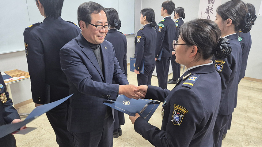 ![]() 2025³â 11¿ù 4ÀÏ ±¹¹æ°æÂû°è¿Àº '2025³â Ãë¾÷¿ì¼öÀÚ ÇÐÀå ǥâ ¼ö¿©½Ä'À» °³ÃÖÇÏ¸ç ¶Ù¾î³ Áø·Î¼º°ú¸¦ °ø½ÄÀûÀ¸·Î ÀÎÁ¤¹Þ´Â ÀÚ¸®¸¦ ¸¶·ÃÇß½À´Ï´Ù. ![]() À̹ø ¼ö¿©½Ä¿¡´Â ƯÈ÷ À°±º3»ç°üÇб³ ¿©ÀÚ »ç°ü»ýµµ ÇÕ°ÝÀÚ 11¸íÀ» Æ÷ÇÔÇÑ ´Ù¼öÀÇ Ãë¾÷¿ì¼ö ÇÕ°ÝÀÚµéÀÌ Ç¥Ã¢À» ¹ÞÀ¸¸ç °è¿ÀÇ Àú·ÂÀ» Á¦´ë·Î ÀÔÁõÇß½À´Ï´Ù. ÇÐÀåÀº °Ý·Á»ç¿¡¼ "¿©·¯ºÐÀÇ ¼º½ÇÇÔ°ú ¸ñÇ¥ ÀǽÄÀº ´Ü¼øÇÑ ¼ºÃ븦 ³Ñ¾î, ±¹°¡¸¦ À§ÇØ Çå½ÅÇÒ ÀÎÀç·Î ¼ºÀåÇÏ´Â Åä´ë°¡ µË´Ï´Ù."¶ó¸ç ¾ÕÀ¸·Îµµ ²ÙÁØÇÑ ÀÚ±â°è¹ßÀ» °Á¶Çß½À´Ï´Ù. ![]() ¼ö»ó ÇлýµéÀº ±×µ¿¾È ½×¾Æ¿Â Áغñ¿Í ³ë·ÂÀÌ ¼º°ú·Î À̾îÁø °Í¿¡ ´ëÇØ °¨»çÇÔÀ» ÀüÇϸç, ¹Ì·¡ ´ëÇѹα¹ À°±ºÀ» ¼±µµÇذ¥ ¸®´õ·Î¼ Ã¥ÀÓ°¨ ÀÖ´Â ÀÎÀç°¡ µÇ°Ú´Ù´Â Æ÷ºÎ¸¦ ¹àÇû½À´Ï´Ù. ![]() À̹ø ¼ö¿©½ÄÀº ±¹¹æ°æÂû°è¿ÀÌ Ã¼°èÀûÀÎ Áø·Î Áöµµ¿Í ¸ÂÃãÇü ±³À°À» ÅëÇØ ½ÇÁ¦ ¼º°ú¸¦ ¸¸µé¾î³»´Â °è¿ÀÓÀ» ´Ù½Ã ÇÑ ¹ø Áõ¸íÇÏ´Â ¶æ±íÀº ÀÚ¸®¿´½À´Ï´Ù. ![]() º»±³´Â ¾ÕÀ¸·Îµµ ÇлýµéÀÌ Àü¹®¼º°ú ÀμºÀ» °âºñÇÑ ±¹°¡ ÇÙ½É ÀÎÀç·Î ¼ºÀåÇÒ ¼ö ÀÖµµ·Ï Áø·Î·±³À° Áö¿øÀ» Áö¼ÓÀûÀ¸·Î °ÈÇØ ³ª°¥ °èȹÀÔ´Ï´Ù. ![]() |
