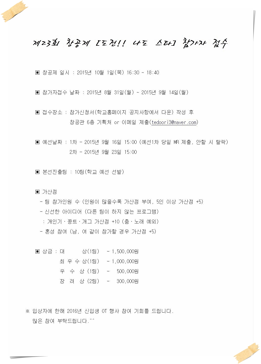 Á¦23ȸ â°øÁ¦ [µµÀü!! ³ªµµ ½ºÅ¸] Âü°¡ÀÚ Á¢¼ö