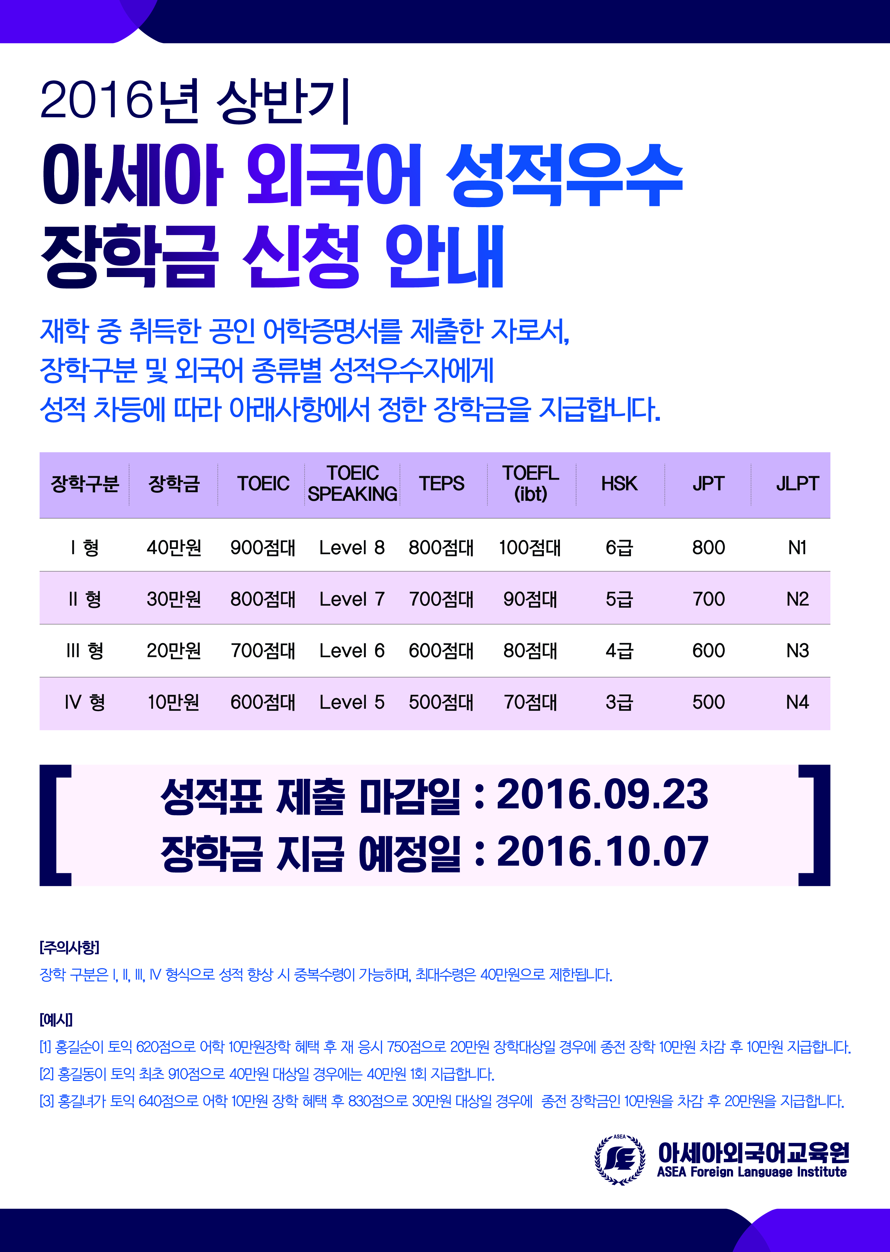 2016³â »ó¹Ý±â ¾Æ¼¼¾Æ ¿Ü±¹¾î ¼ºÀû¿ì¼ö ÀåÇÐ±Ý ½Åû ¾È³»