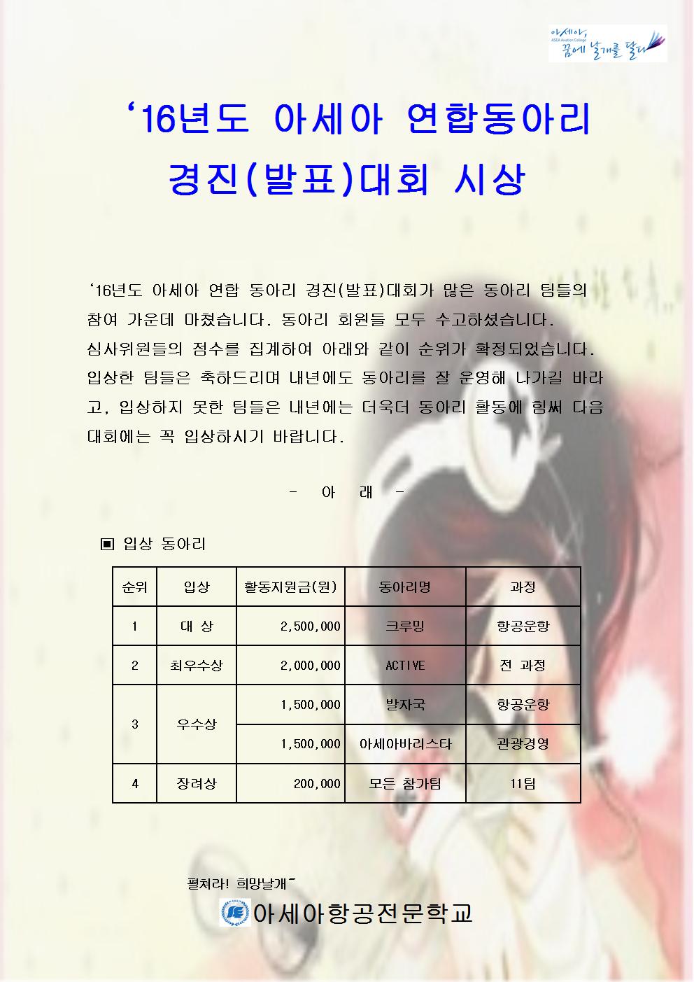 '16³âµµ ¾Æ¼¼¾Æ ¿¬ÇÕ µ¿¾Æ¸® °æÁø(¹ßÇ¥)´ëȸ ½Ã»ó