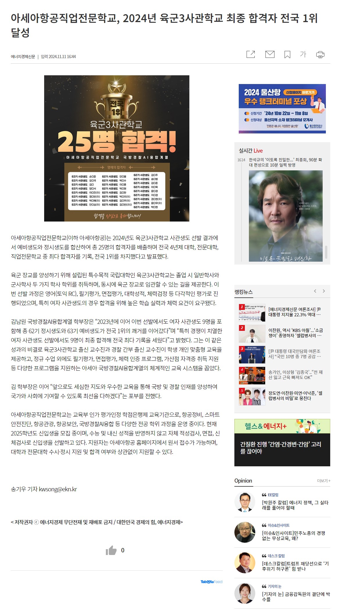 2024³â À°±º3»ç°üÇб³ ÃÖÁ¾ ÇÕ°ÝÀÚ Àü±¹ 1À§ ´Þ¼º